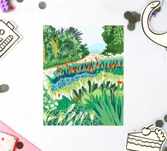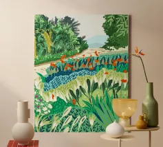 natura passeggiata paesaggio giardino piante alberi pittura verde fiori prato floreale