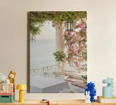 Fuggite nella splendida bellezza della Costiera Amalfitana con questa fotografia mozzafiato di un balcone soleggiato a Sorrento, in Italia. Affacciata sulle scintillanti acque turchesi, la vista cattura l'essenza del paradiso mediterraneo. Immersa nella luce dorata del sole, l'immagine invita a rilassarsi e a godersi la tranquillità della scena, con i suoi incantevoli balconi a terrazza e la vegetazione lussureggiante. Perfetta per chi sogna una fuga in costiera, questa immagine porta la bellezza calda e disinvolta delle giornate estive di Sorrento direttamente a casa vostra.