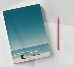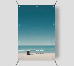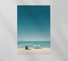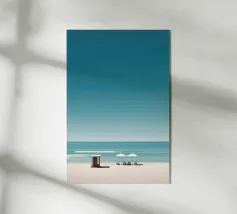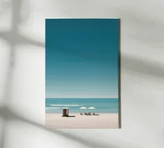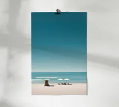 Catturate l'eleganza pacifica di una spiaggia privata con questa opera d'arte, che raffigura una piccola cabina e sedie da spiaggia. Perfetto per un'estetica rilassante e minimalista.