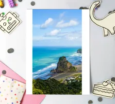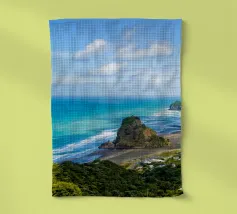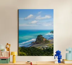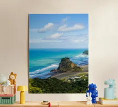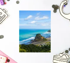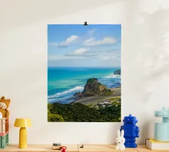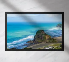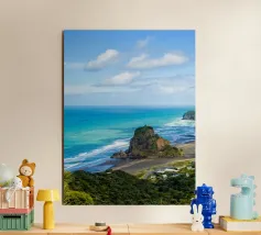 Spiaggia di Piha, roccia del leone, fotografia scenografica di Piha Beach, decorazione murale