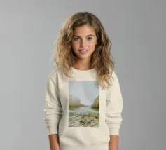 Le onde delicati rotolano sulla riva, lasciando dietro di sé disegni bianchi e spumosi che brillano alla luce del sole. La brezza salata porta il profumo del mare e rinfresca la sabbia calda sotto i piedi. I gabbiani planano sull'acqua e i loro richiami risuonano nell'aria aperta. L'oceano brilla nelle sfumature del turchese e del blu profondo, incontrando il cielo in un orizzonte lontano e nebuloso.