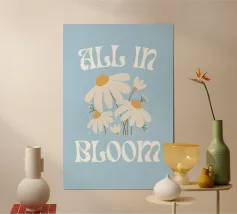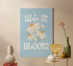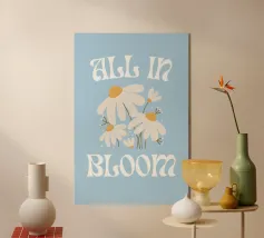 Date un'atmosfera fresca e allegra al vostro spazio con questo delizioso poster digitale che riporta la frase edificante "All In Bloom". Il testo è reso in un elegante carattere ondulato di ispirazione rétro, che completa perfettamente l'affascinante illustrazione di diverse margherite bianche con centro giallo e steli delicati. Su uno sfondo azzurro, questa opera d'arte evoca sentimenti di crescita, rinnovamento e bellezza naturale. Questo poster digitale di alta qualità viene fornito con un'impressionante risoluzione di 7000x5000 pixel e 300 dpi, assicurando una chiarezza eccezionale e colori vivaci per un'immagine davvero coinvolgente ed estetica.
