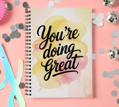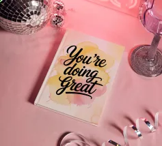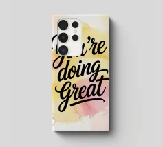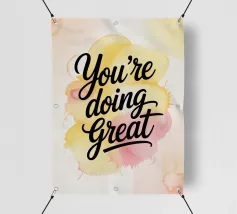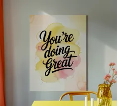 Un gioioso promemoria per il vostro spazio quotidiano. Questa vivace opera d'arte da parete riporta la frase motivazionale "You're Doing Great" in caratteri decisi, su una base di caldi schizzi acquerellati. Un'aggiunta perfetta per la casa o l'ufficio.