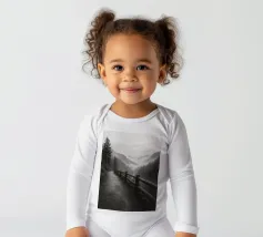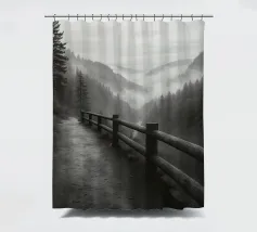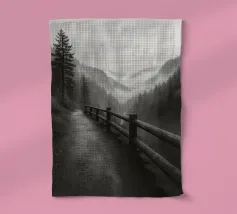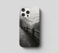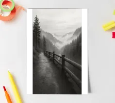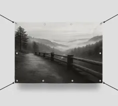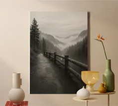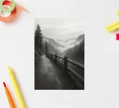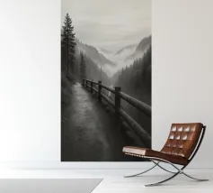 strada sul bordo di una scogliera nella foresta fotografia in bianco e nero