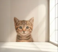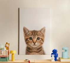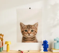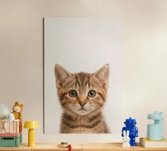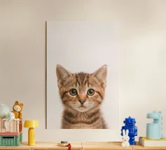 Questo piccolo gattino porta calore, calma e una buona dose di simpatia in ogni stanza. Con i suoi grandi e morbidi occhi e la sua pelliccia soriana su sfondo bianco, si adatta perfettamente alle moderne camere dei bambini, alle famiglie che amano gli animali o ai concetti di vita minimalisti. Ideale come motivo singolo o come parte della serie "Studio Critters" - affascinante, di alta qualità e di una simpatia senza tempo.