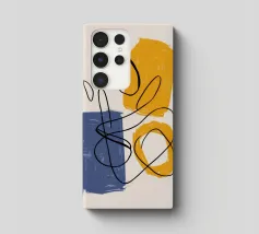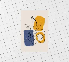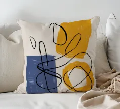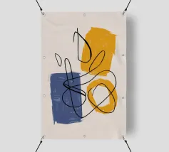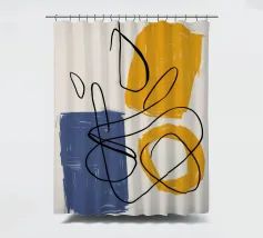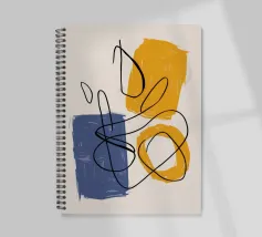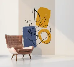 Quest'opera d'arte astratta sembra uno schizzo spontaneo e improvvisato. Linee nere fluide e scarabocchi interagiscono con un blocco di giallo caldo e uno sfondo beige strutturato, creando un'opera che esplora il movimento, la linea e la forma con un'energia libera ed espressiva.