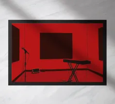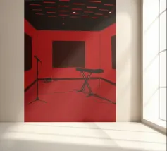 Design dello studio musicale che ottimizza l'acustica e l'ergonomia. Un layout efficiente e confortevole per la massima registrazione e produzione musicale.