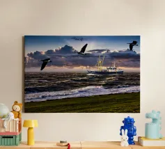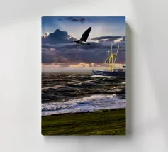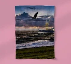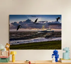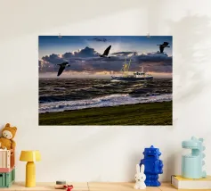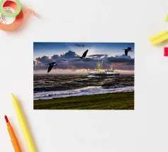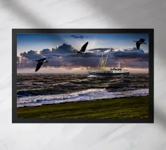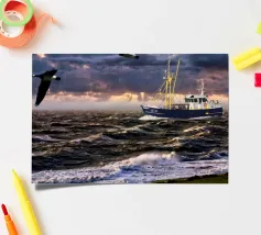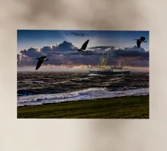 Storm on the North Sea è un'opera espressiva di arte digitale, realizzata come stampa digitale di alta qualità. La grafica computerizzata interpreta la potenza cruda e l'atmosfera dinamica di una tempesta nel Mare del Nord in un linguaggio visivo ridotto e moderno. Vento, onde e nuvole sono tradotti in forme astratte e strutture in movimento grazie a strumenti di design digitale. Le sfumature di colore nei toni del grigio e del blu creano un'atmosfera drammatica e quasi tangibile. La composizione si basa sul contrasto tra calma e movimento, ordine e caos.