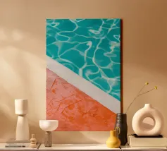 Questa stampa d'arte minimalista a bordo piscina cattura la serena bellezza di una piscina turchese, con il contrasto arancione brillante del bordo e l'acqua morbida e tranquilla. La semplicità del disegno evoca relax e calma, rendendolo un pezzo ideale per creare un'atmosfera tranquilla e moderna. Le linee pulite e i colori vivaci lo rendono un'aggiunta perfetta a qualsiasi spazio contemporaneo. Ideale per soggiorni moderni, camere da letto o uffici, quest'opera d'arte darà un tocco rinfrescante ed elegante alla vostra casa.