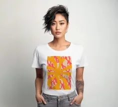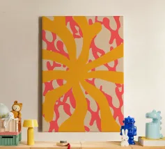 Ravvivate il vostro spazio con questa audace stampa astratta! "Yellow Summer" presenta forme organiche arancioni dinamiche che si irradiano verso l'esterno, su uno sfondo corallo vivace con morbide sfumature beige. Il design fluido e giocoso evoca il calore e l'energia delle giornate di sole, rendendolo un pezzo perfetto per interni moderni, spazi di lavoro creativi o qualsiasi stanza che abbia bisogno di un tocco di colore e vivacità. Portate l'essenza dell'estate in casa! 🌞