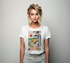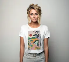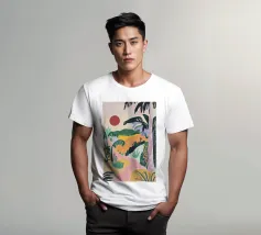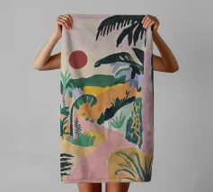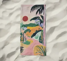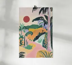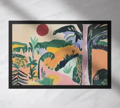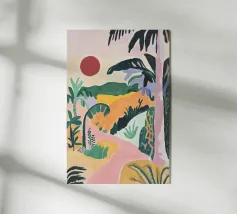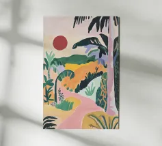 "Sunset Jungle Path" è un vibrante paesaggio astratto che cattura il calore e l'energia di una giungla tropicale al tramonto. Pennellate audaci ed espressive di verdi, rosa e gialli conducono l'osservatore lungo un sentiero tortuoso, mentre il sole al tramonto - un globo rosso incandescente - aggiunge un tocco di misticismo alla scena. L'uso giocoso di colori e forme evoca un senso di avventura e tranquillità, rendendo quest'opera d'arte perfetta per aggiungere un'atmosfera vivace ed esotica a qualsiasi spazio. Progettato da BALIKA HOMES.
