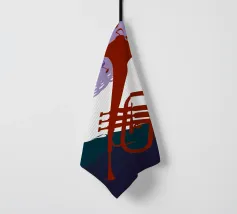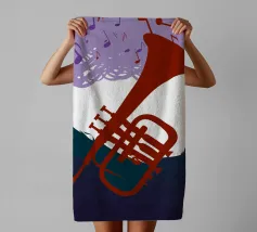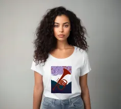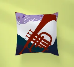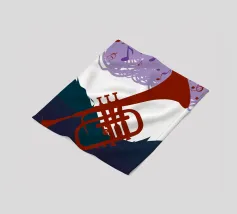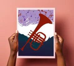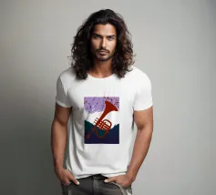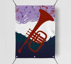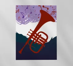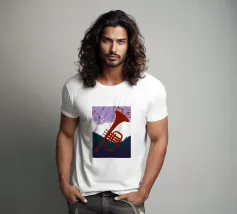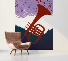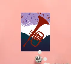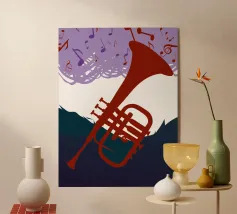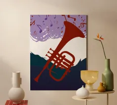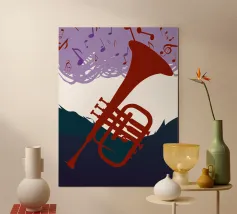 Sentite lo spirito della musica attraverso un design pieno di emozioni. L'immagine di un trombettista perso nella musica crea un'atmosfera calda e stimolante.