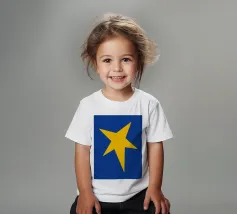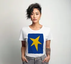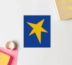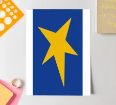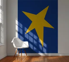 Un'audace stella gialla brilla su uno sfondo blu intenso in questo sorprendente design minimalista. Perfetta per le gallerie da parete e per l'arredamento eclettico della casa, questa opera d'arte aggiunge un tocco giocoso e moderno con un pizzico di fascino retrò.