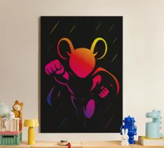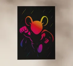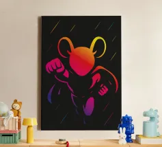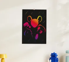 Elegante topo supereroe in un brillante colore neon sfumato. Moderno, potente e perfetto per gli appassionati di fumetti, cosplay e streetwear. Ideale come maglietta cool per bambini e adulti.