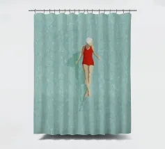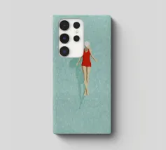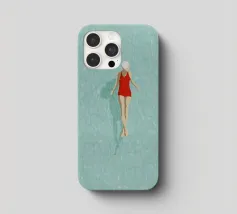 Opera d'arte vettoriale minimalista che raffigura una figura femminile solitaria in costume da bagno al centro di una piscina serena. Le linee pulite, le tonalità tenui e la composizione tranquilla evocano calma, introspezione ed eleganza estiva, perfette per il design moderno e le immagini di lifestyle.