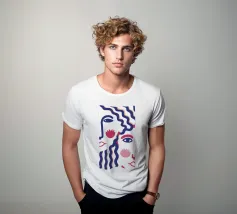 Un disegno al tratto minimalista mostra due volti di profilo, con i capelli ondulati e i lineamenti che si sovrappongono, suggerendo una conversazione o un legame intimo.