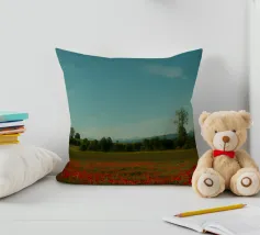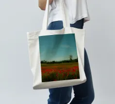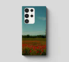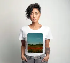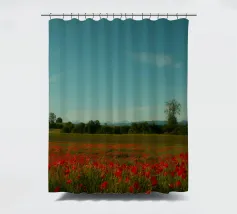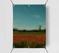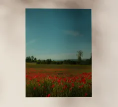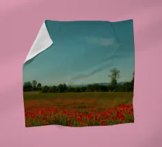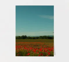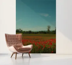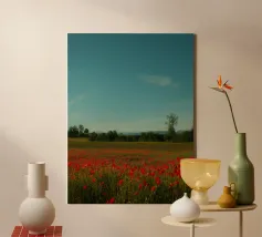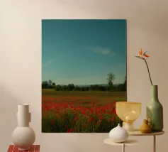 Un campo vibrante di papaveri rossi si estende nella campagna svizzera, con le cime alpine innevate visibili in lontananza. Le brillanti fioriture scarlatte creano un contrasto straordinario con il verde dei prati e il turchese del cielo. Questo idilliaco paesaggio rurale cattura l'essenza della primavera svizzera e la bellezza naturale dei prati di fiori selvatici europei.