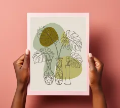 Bellezza tropicale in ogni dettaglio! Questo disegno presenta tre affascinanti fiori di Monstera