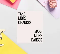 Sfondo beige con testo nero: "Cogli più occasioni, fai più balli".