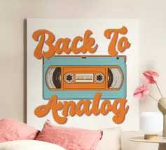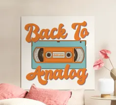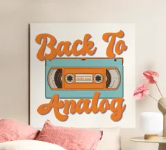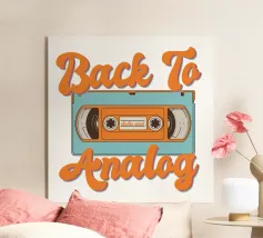 Una canzone d'amore visiva all'era analogica: al centro c'è un'audiocassetta stilizzata in arancione, nero e grigio, incorniciata in una custodia blu - un simbolo iconico dell'era delle VHS e dei mixtape. La scritta "Back To Analogue", in caratteri arancioni curvi e con un bordo in ombra blu, va al cuore del messaggio: il retrò non è solo stile, è attitudine. La composizione è come un momento di rewind nostalgico: calda, ribelle e piena di fascino.