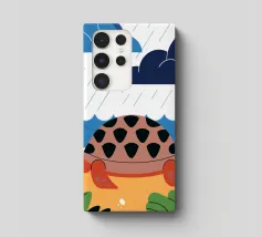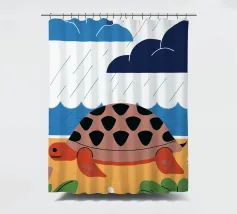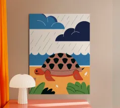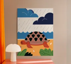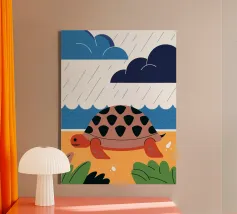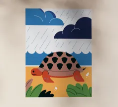Godetevi una tranquilla illustrazione vettoriale con una tartaruga che cammina sulla spiaggia.