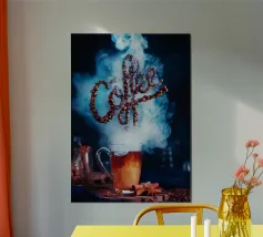 caffè tazza di caffè fumo bastoncini di cannella chicchi di caffè tazza di vetro bevanda fumante sfondo scuro spezie invernali vapore aromatico atmosfera accogliente superficie in legno zucchero spezia bevanda bevanda calda momento caffè rituale mattutino arte del caffè infusione
