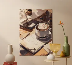 tazza da caffè computer portatile quaderni penna latte art tavolo in legno scrittura ambiente del caffè ambiente di lavoro carta tastiera tappetino del mouse tecnologia bevanda spazio di lavoro forniture per ufficio relax produttività luce ombra