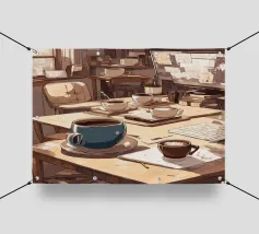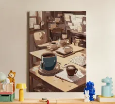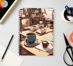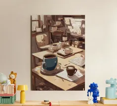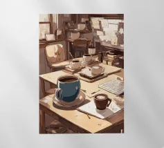 tazze da caffè scrivania per ufficio schermo per computer taccuino portamatite sedia da ufficio finestra fogli tastiera cucchiaio tazze da caffè cancelleria appunti tavolo arte digitale lavagna blocco per schizzi spazio ufficio scrivania in legno penna