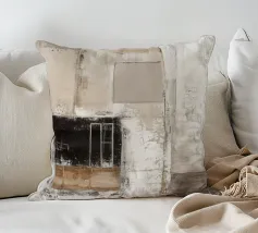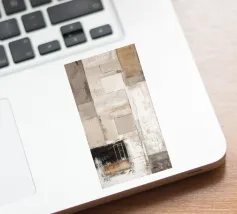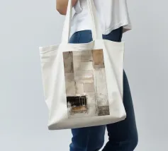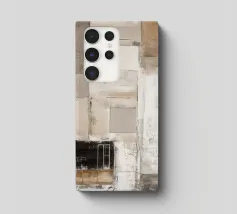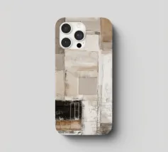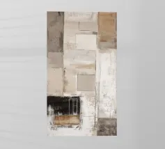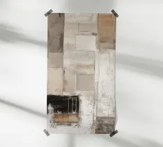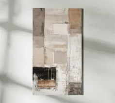 Questo disegno astratto combina elementi industriali con colori terrosi e forme minimaliste. Le texture stratificate di carta e materiali da costruzione, combinate con pennellate, creano un'affascinante profondità e riflettono lo stile boho del design contemporaneo.