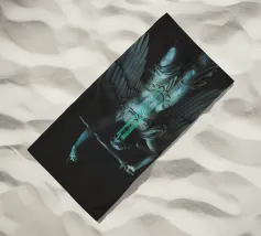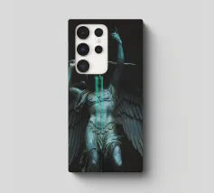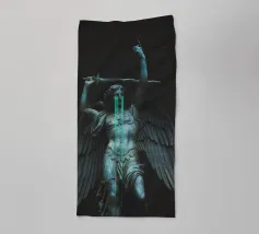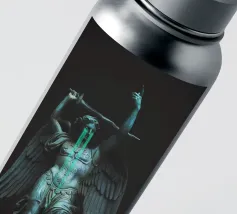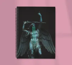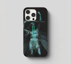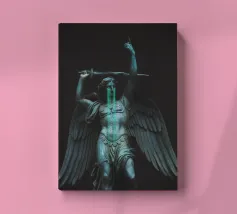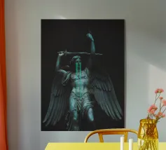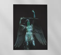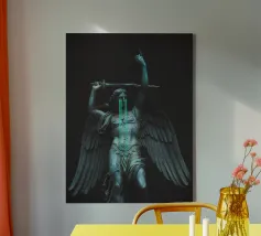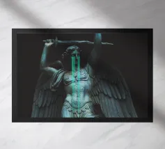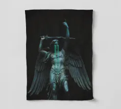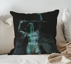 il torto sarà vendicato, la ferita sarà curata, tutto sarà ripristinato. ~ statua di un angelo con grandi ali in lacrime che impugna una spada. elementi scuri surreali in pietra di marmo