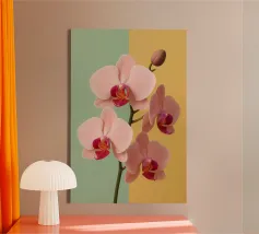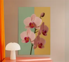 Questo poster mostra un'elegante orchidea in delicate sfumature di rosa su uno sfondo moderno e bicolore. L'armoniosa composizione di colori dona una fresca leggerezza a qualsiasi salotto e rende il quadro un elegante richiamo visivo. Ideale per chi apprezza i motivi floreali e il design senza tempo.
