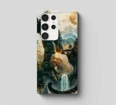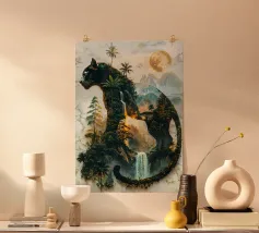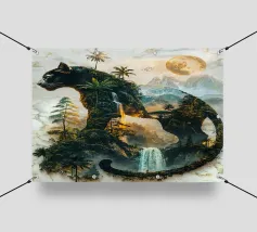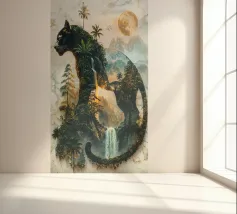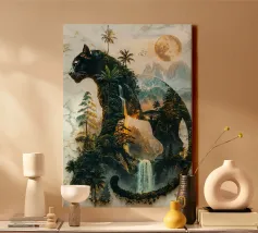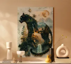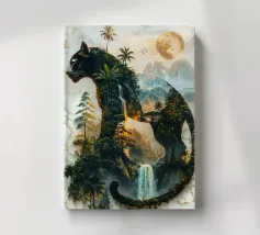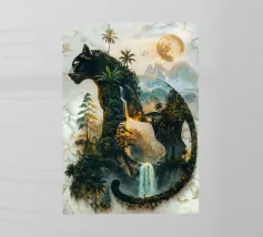 Una maestosa pantera nera, guardiana della notte, si erge alta e fiera, la sua forma si fonde con la giungla illuminata dalla luna. Questa potente creatura incarna lo spirito della natura selvaggia, governando il suo dominio con forza e grazia incrollabili.