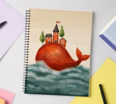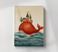 Una dolce balena rossa si muove alla deriva tra le onde dell'oceano, trasportando un piccolo villaggio sulla schiena. Con toni caldi e terrosi e un tocco stravagante, questa illustrazione evoca un senso di meraviglia, avventura e tranquilla magia. Gli alberi ondeggiano nella brezza e una bandiera rossa sventola in cima alla torre più alta, come se segnasse un mondo segreto e fluttuante noto solo ai sognatori. "Il guardiano dei sogni nascosti" ci ricorda che la casa può essere trovata nei luoghi più inaspettati, trasportata al sicuro dalle correnti dell'immaginazione.