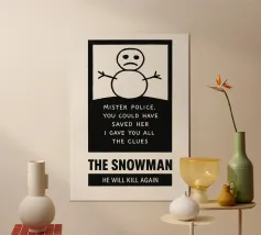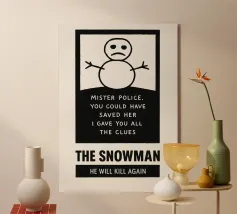 Stampa del pupazzo di neve, Poster cinematografico alternativo, Arte murale minimale, Bianco e nero, Disegno del pupazzo di neve, Mistero e omicidi, Cinema, Regalo per gli appassionati di cinema