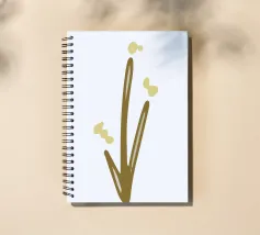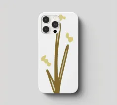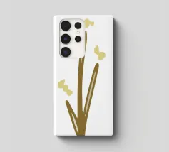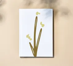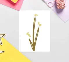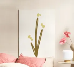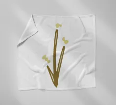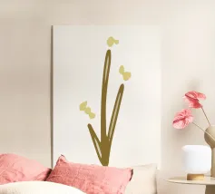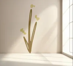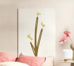 Un semplice disegno a linee marroni rappresenta una pianta con tre rami e piccole forme che ricordano foglie o boccioli. Lo stile minimalista e i colori neutri conferiscono un'atmosfera astratta.