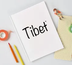 Amore per il Tibet. Tipografia in nero e bianco (trasparente). È possibile cambiare il colore dello sfondo. Poster tipografico minimalista.