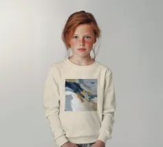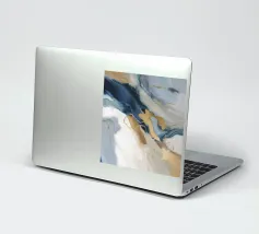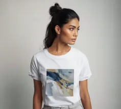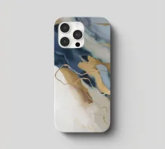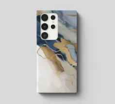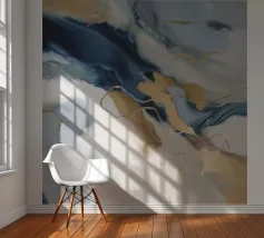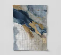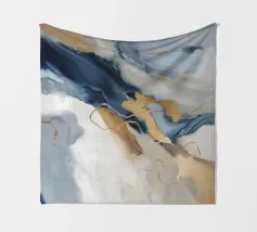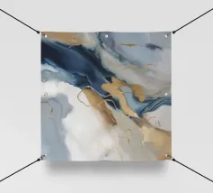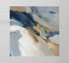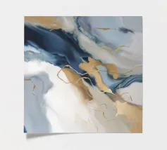 Ruscelli dorati si intrecciano con maree bianche e indaco, evocando un miraggio oceanico celeste.