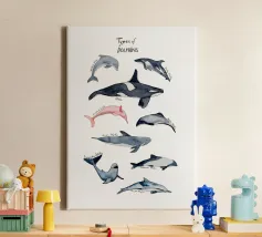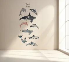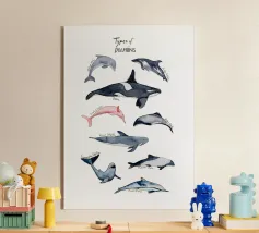 Immergetevi nel mondo stravagante di 9 diversi tipi di delfini, tutti amorevolmente disegnati a mano e dipinti in morbido acquerello! Questo affascinante disegno presenta delfini giocosi, tra cui l'iconica orca, che nuotano allegramente in un'ambientazione a tema oceanico. Ogni delfino è accompagnato dal suo nome, scritto in un carattere disegnato a mano, che aggiunge un tocco divertente e personale all'opera d'arte. Perfetto per gli amanti dei delfini, per i bambini o per chiunque voglia dare un tocco giocoso al proprio arredamento, questo disegno è ideale per le camerette, le stanze dei bambini o come regalo unico per gli appassionati dell'oceano. Fate rivivere la magia del mare con questo adorabile disegno.