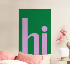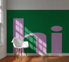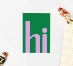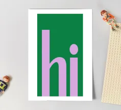 stampa di auguri moderna, design tipografico minimalista, opere d'arte con testo in grassetto, decorazioni grafiche colorate, hello art giocosa, estetica verde e lilla