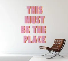 citazione di design retrò, tipografia colorata e audace, testo d'ispirazione stampato, tendenza d'arredo rosa-arancio, messaggio artistico positivo, dichiarazione grafica moderna