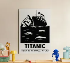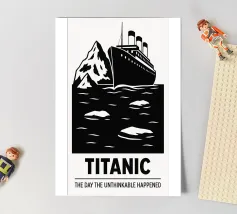 Stampa Titanic, Poster cinematografico alternativo, RMS Titanic, Collisione dell'iceberg, Film, Regalo, Stampe di qualità, Bianco e nero, Arte murale cinematografica minimale