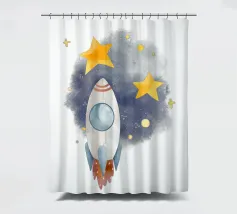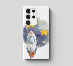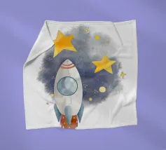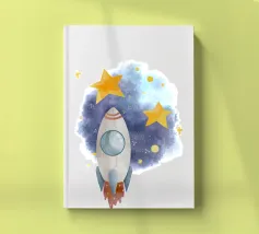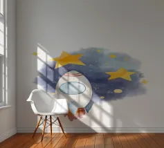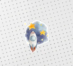 Pronti per il conto alla rovescia? Questo simpatico motivo mostra un affascinante razzo che vola in un luminoso cielo notturno pieno di stelle gialle. La morbida texture ad acquerello e il design giocoso lo rendono perfetto per le camere dei bambini, le aree gioco o come regalo per i piccoli fan dello spazio.