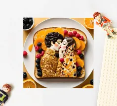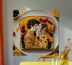 Toast Deco è un'opera d'arte digitale umoristica e allo stesso tempo esteticamente sofisticata, progettata come grafica computerizzata giocosa. L'attenzione si concentra su un toast stilizzato, non come cibo, ma come oggetto decorativo, messo in scena graficamente. Con contorni netti, texture sottili e dettagli creativi, il quotidiano viene inserito in un nuovo contesto artistico. La rappresentazione digitale gioca con i contrasti tra i colori caldi del pane, gli sfondi minimalisti e gli elementi decorativi posizionati con cura, come forme di topping, motivi o effetti astratti di dispersione.