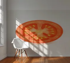 Una simpatica e succosa fetta di pomodoro con un dolce sorriso e linee semplici, perfetta per ravvivare le pareti della cameretta. I colori tenui e il volto amichevole lo rendono ideale per introdurre i più piccoli ai cibi sani in modo divertente e giocoso. Ideale per cucine, asili nido e spazi per l'apprendimento precoce.