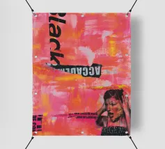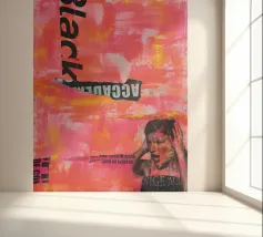 Tecnica mista con pittura acrilica, pasta strutturata, elementi di collage da manifesti e riviste.