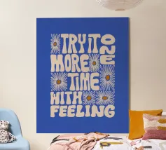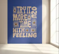 Infondete nel vostro spazio una dose di vibrante ottimismo con questa stampa d'arte "Try It More Time". L'audace tipografia bianca, ornata da graziosi contorni di margherite, spicca su uno sfondo blu ricco e rilassante. In alto, la parola "GROOVY" risalta in giallo brillante, ombreggiata in nero, catturando perfettamente un'estetica giocosa degli anni '70. Questo pezzo è una deliziosa miscela di fascino retrò e sentimento incoraggiante, ideale per dare un tocco allegro ed elegante a qualsiasi stanza. Questa arte digitale di alta qualità è presentata in una splendida risoluzione di 7000x5000 pixel a 300 dpi, che garantisce dettagli nitidi e colori vivaci.