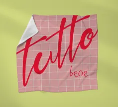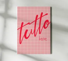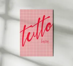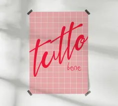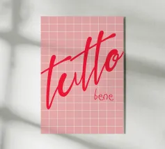 Ditelo con un sorriso: Tutto Bene! Questa frase italiana, calda e giocosa, prende vita in un disegno tipografico colorato e amichevole che irradia calma e gioia.