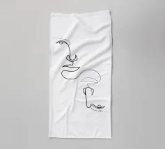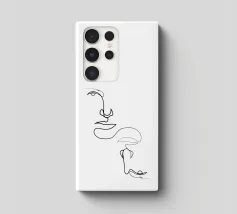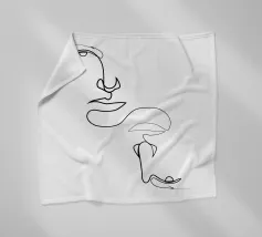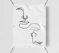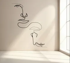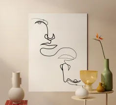 Disegno a linee continue minimalista e astratto di due facce specchiate
