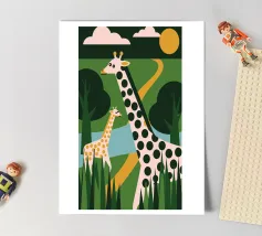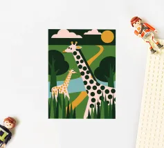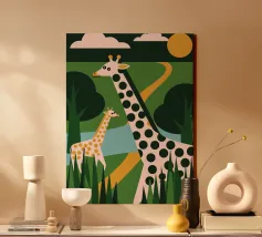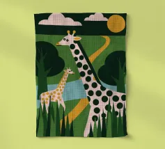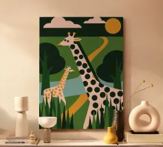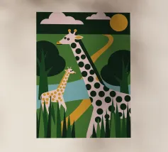 Scoprite la bellezza della natura selvaggia africana nella nostra ultima collezione, Two Giraffes! L'affascinante illustrazione presenta due graziose giraffe, creando un'atmosfera calma ed elegante.