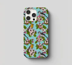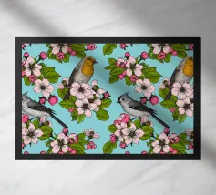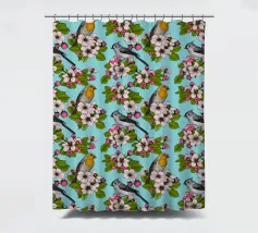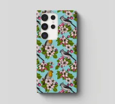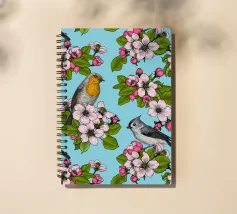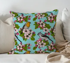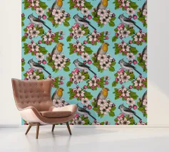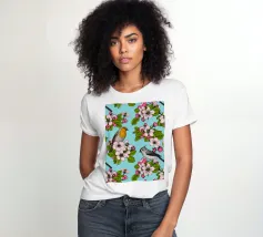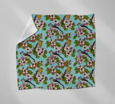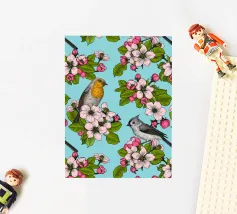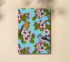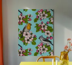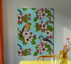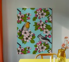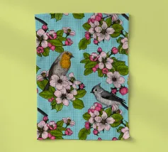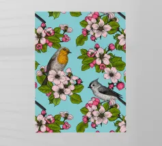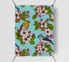 Fiori di melo e uccelli dipinti a mano.